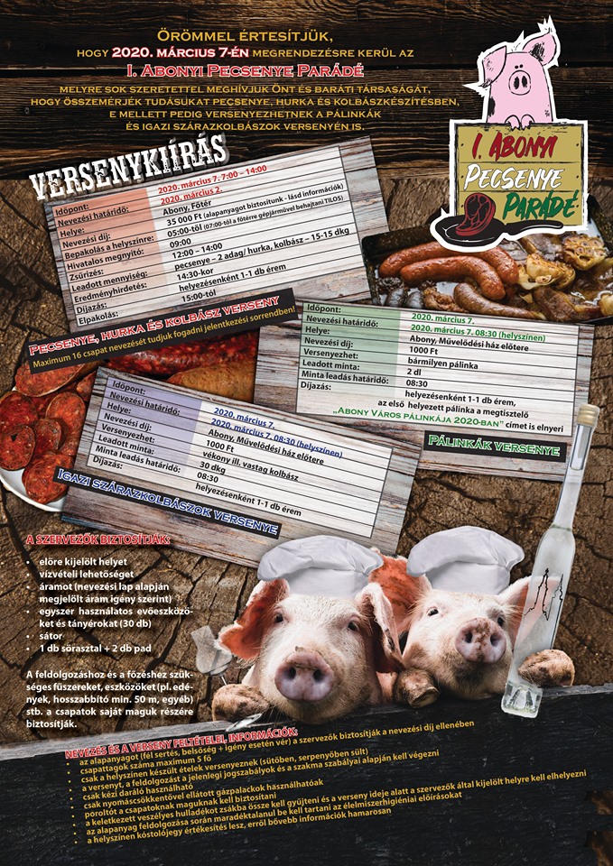 I. Abonyi Pecsenye Parádé Pálinkák Versenye 2020 – Abony