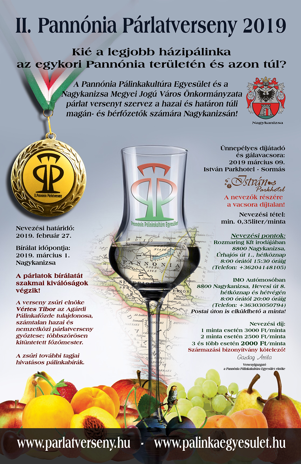 Keressük Pannónia kincsét! Kié a legjobb házi pálinka az egykori Pannónia területén és azon is túl? A Pannónia Pálinkakultúra Egyesület ismét egy nagyszabású párlatversenyt hirdet kizárólag a magán és bérfőzetők részére, hogy a szakértői zsűri segítségével megtalálja PANNÓNIA KINCSÉT!