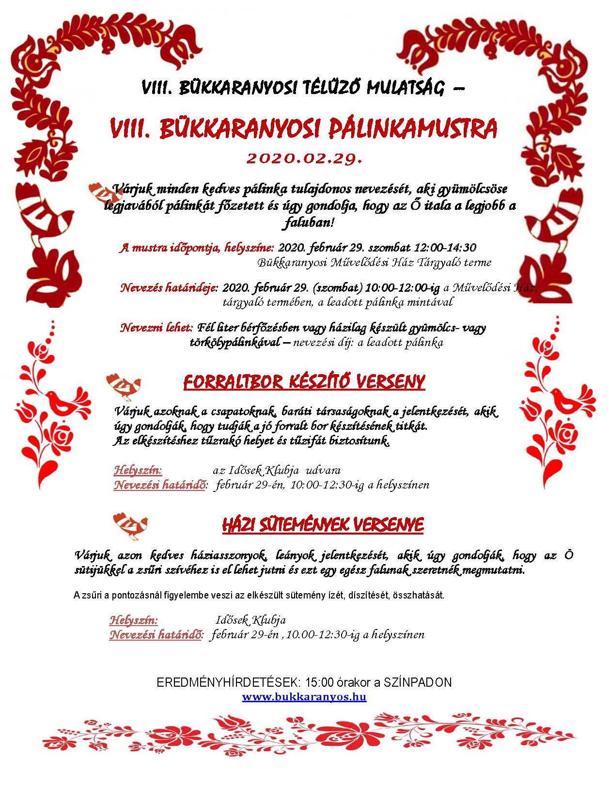VIII. Bükkaranyosi Pálinkamustra 2020 – Bükkaranyos