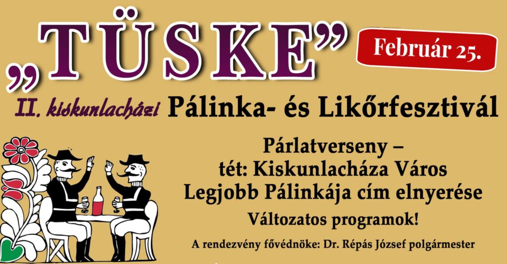 Sok szeretettel várunk minden kedves érdeklődőt a II. kiskunlacházi „TÜSKE” fesztiválra (pálinka-törköly-likőr párlatversenyre) 2023. február 25-én!