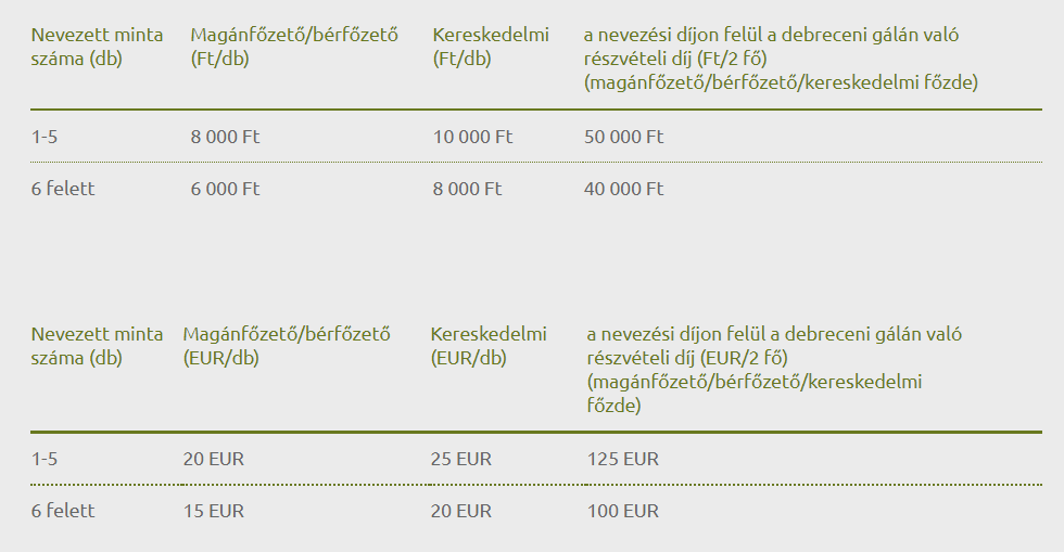 - Az eredményhirdetéssel egybekötött pálinkagálán és állófogadáson való részvételnek külön részvételi díja van
