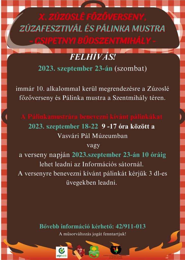 Immár 10. alkalommal kerül megrendezésre a Zúzoslé főzőverseny és Pálinkamustra a Szentmihály téren.