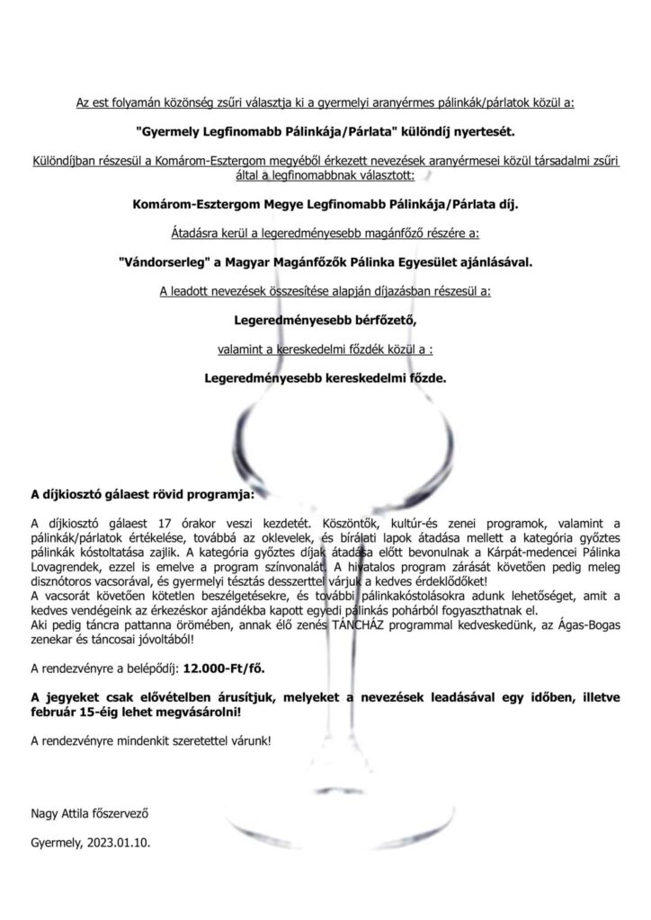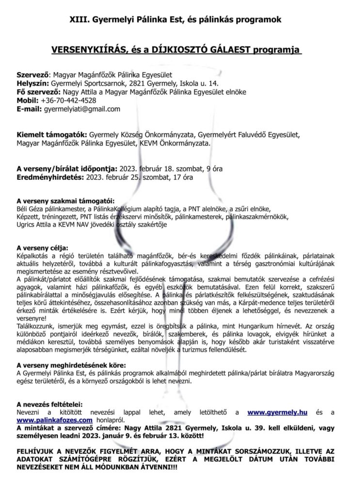 XIII. Gyermelyi Pálinka Est és Pálinkás Programok 2023 – Gyermely